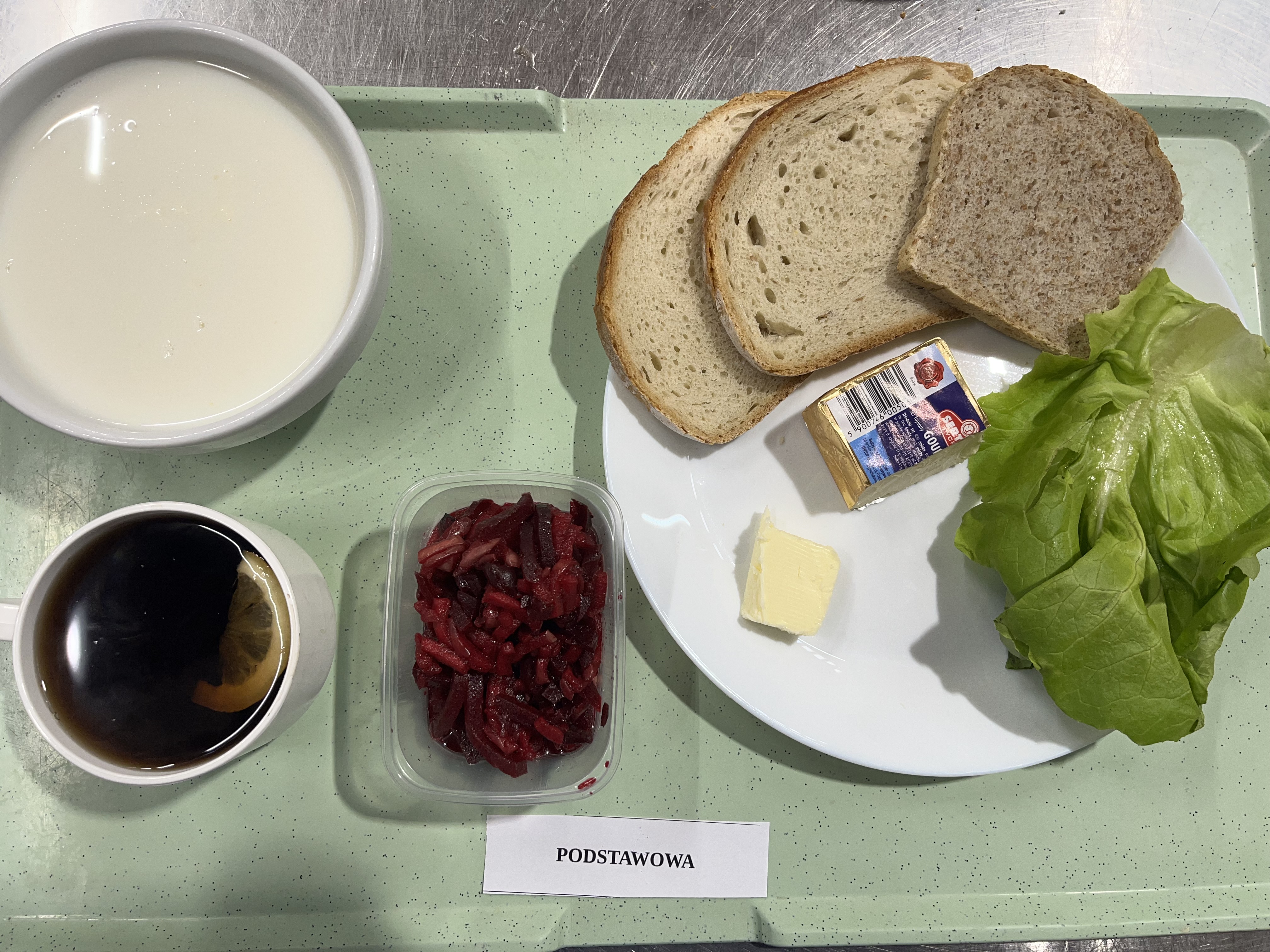 DIETA PODSTAWOWA Kasza kukurydziana na mleku 300 ml (MLE) Herbata czarna granulowana z/c 300 ml Chleb mieszany pszenno-żytni 150 g (GLU PSZ, GLU ŻYT) Chleb Graham 50 g (GLU PSZ) Masło extra 82% 15 g (MLE) Sałatka śledziowa z cebulą i olejem 100 g (RYB) Sałata zielona 10 g |