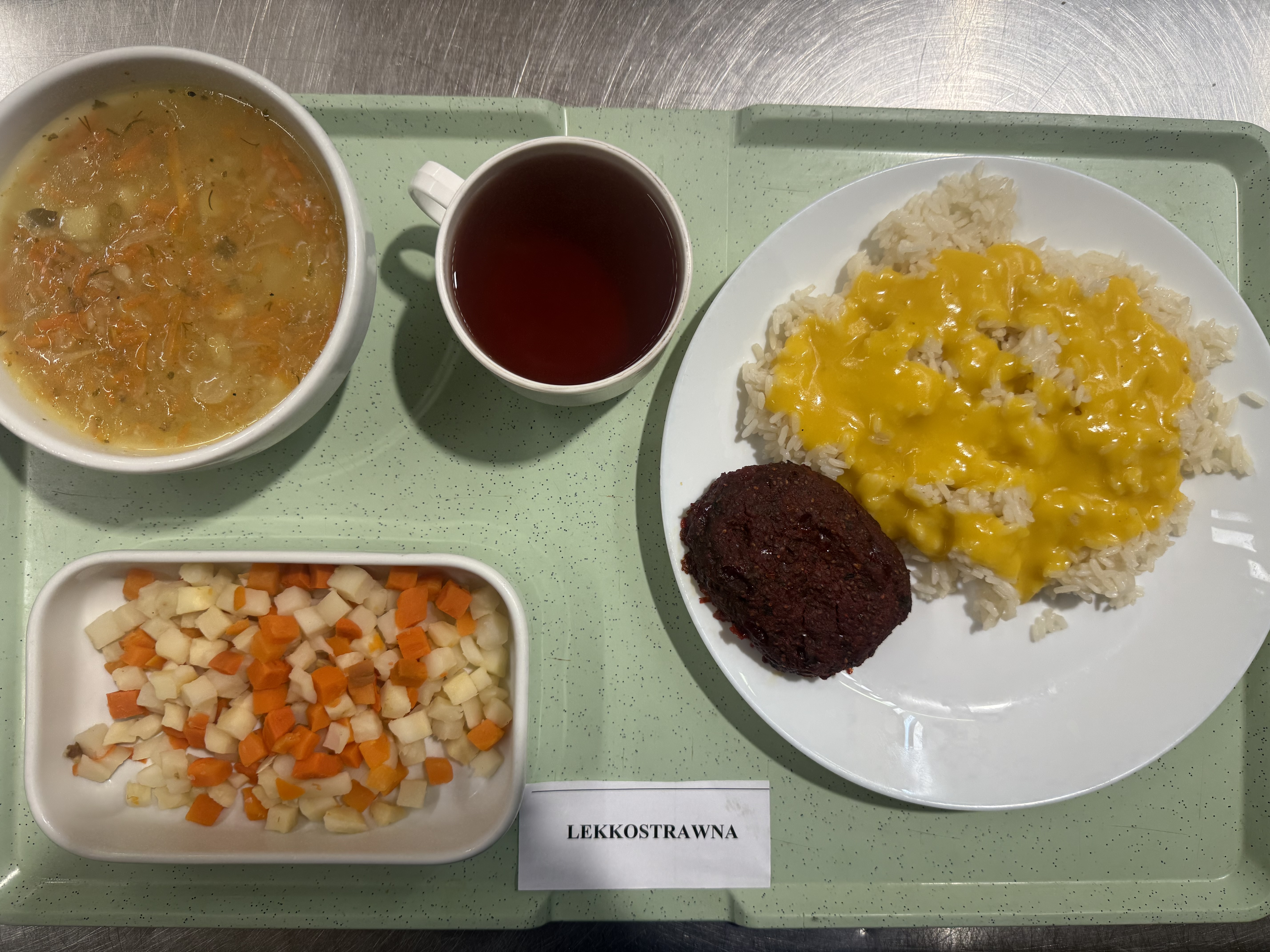 W ramach programu wszystkie posiłki przeznaczone dla naszych pacjentów są przygotowywane w oparciu o jadłospis opracowany przez dietetyka. Zawiera on informacje o rodzaju posiłku i składzie produktów, wartości energetycznej i wartości odżywczej, sposobie obróbki oraz obecności alergenów. Codziennie, od poniedziałku do piątku opublikujemy zdjęcie co najmniej dwóch posiłków, spośród najczęściej stosowanych diet z danego dnia.
